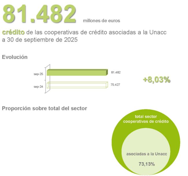 millones de euros de CRÉDITO de las cooperativas de crédito asociadas a la Unacc a 30 de septiembre de 2025
