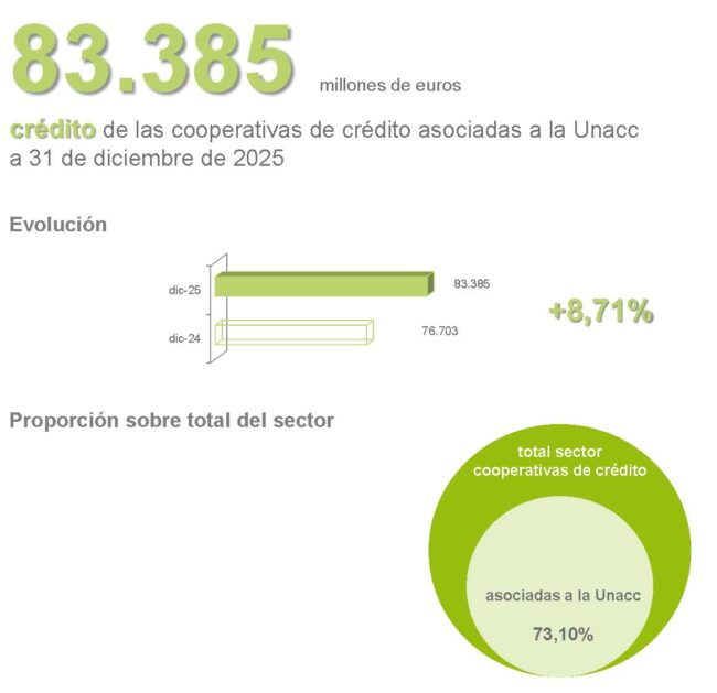 millones de euros de CRÉDITO de las cooperativas de crédito asociadas a la Unacc a 31 de diciembre de 2025