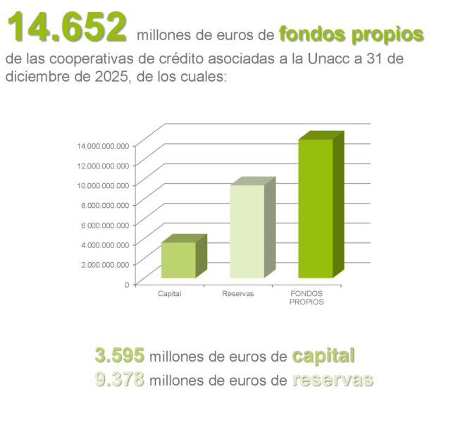 millones de euros de FONDOS PROPIOS de las cooperativas de crédito asociadas a la Unacc a 31 de diciembre de 2025